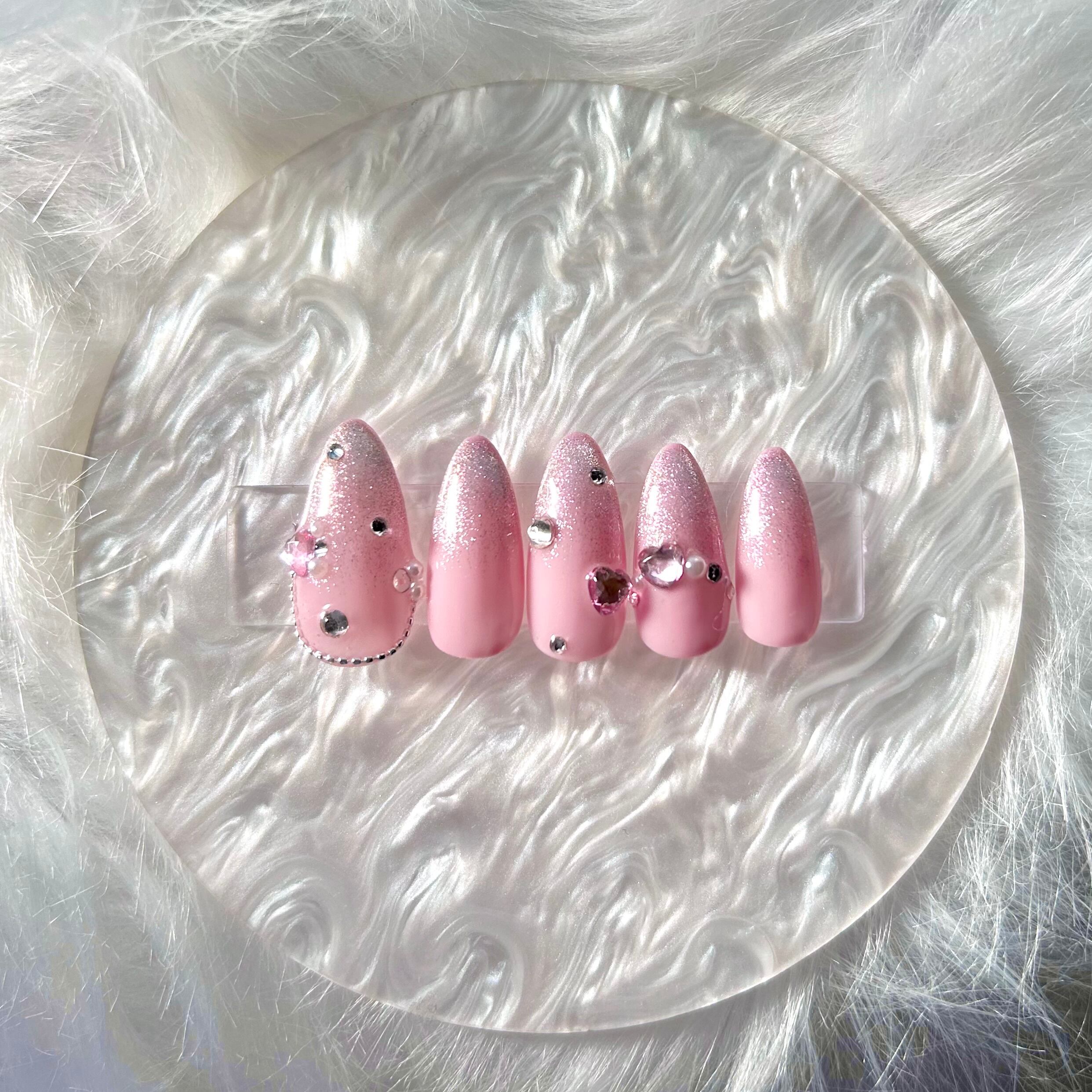 ピンクのワンカラーにマグネットのラメグラデーションデザインです⸝⸝꙳